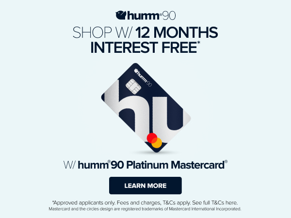 *Approved applicants for a humm90 Mastercard credit card only. Fees and charges apply, including a $99 annual fee that applies on account opening. Applicants who enter into their Credit Contract on or after 1 October 2024 will be charged a monthly fee of $9.95 instead of an annual fee, and existing customers will be transitioned on a rolling basis. Terms and conditions and minimum finance amount applies. For Long Term Interest Free purchases: Minimum monthly payments must be made by the due date each month, otherwise interest at the humm90 Expired Promotional Rate (currently 26.49%) applies. For other purchases: Up to 110 days interest free and payment holiday can apply (excluding purchases we treat as cash advances), after which minimum monthly payments are required. Interest at the humm90 Purchase Rate (currently 26.30%) applies if purchase amount is not repaid within Interest Free Period or if other Interest Free Criteria are not met. All fees, charges and interest rates are current as at June 2024 and subject to change. See humm90.com/au for full terms and conditions. Credit provided by humm Cards Pty Ltd ABN 31 099 651 877 Australian Credit Licence number 247415.